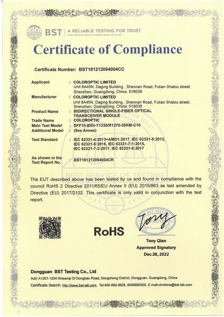 Standart: ROHSSayı: BTS181212094004CCYayımlanma tarihi: 2022-10-26Bitiş tarihi: 2026-12-30